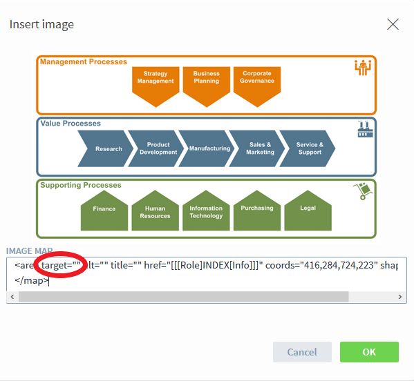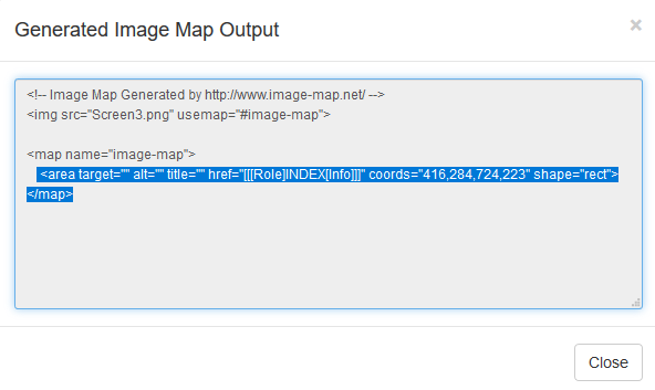 2. Update the image map by double-clicking on the image and copy-pasting the map information in this box. This step specifies the areas in the image where a user can click to be taken to a specific link.