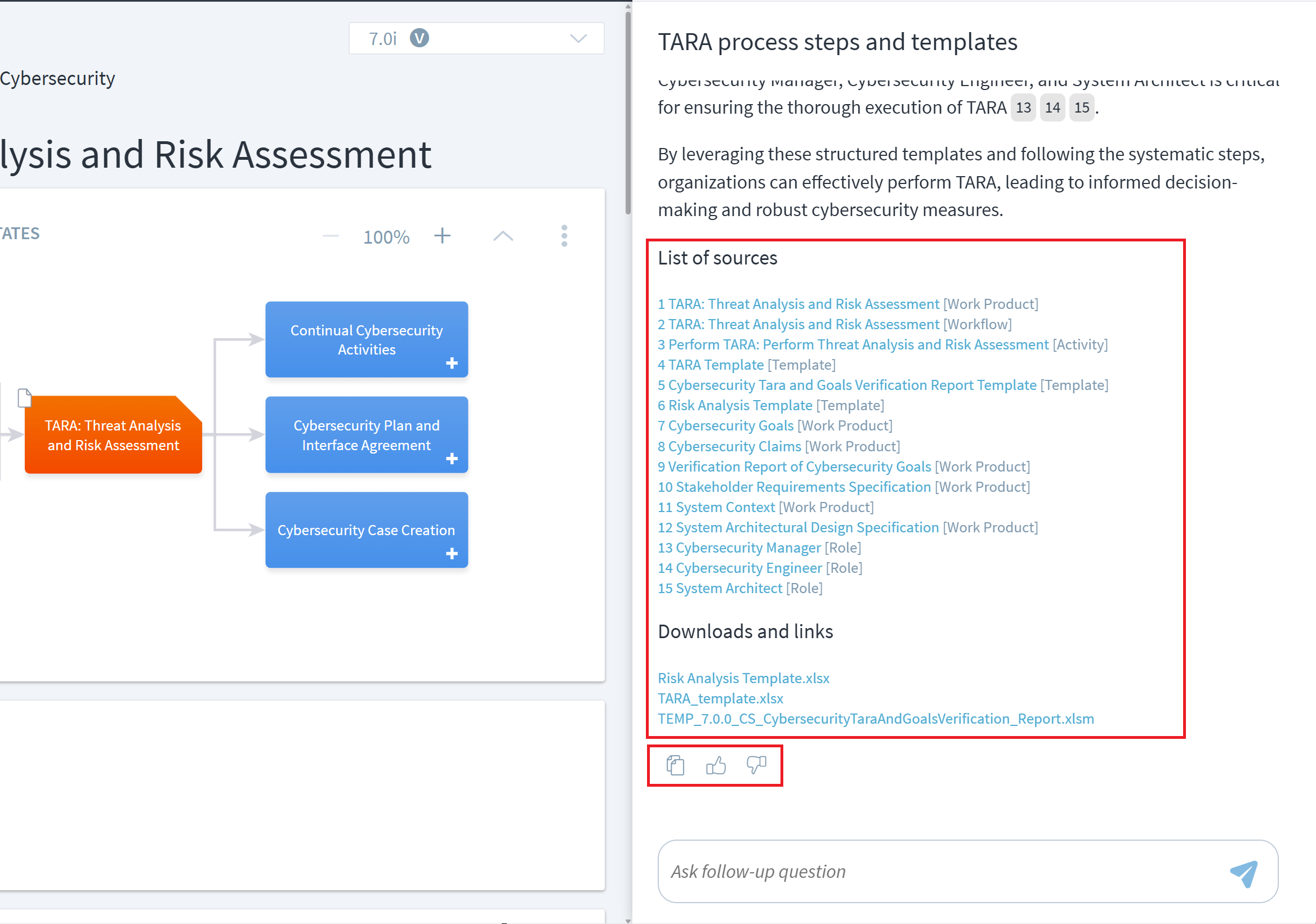 However, due to limitations in the context window of the AI system used for training, the Assistant cannot answer questions that require knowledge of the entire process model (such as “List all work products of all processes”).