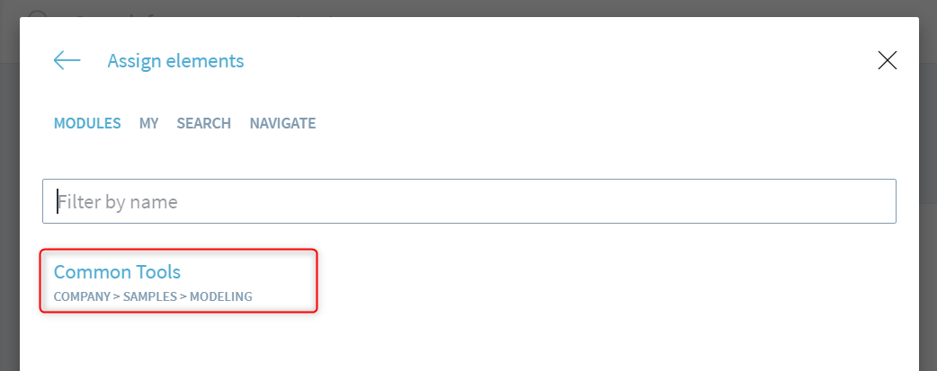 If you do not know the name of the element, use the Browse button, click or tap on the workspace name on the top, and navigate to the module
