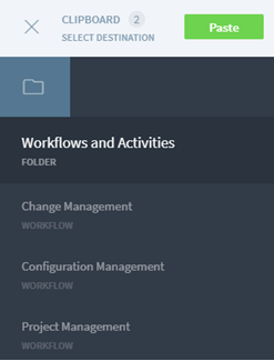 Select the workflow you wish to move, click on ‘Move’. Navigate to the workspace or workflow, where you wish to move the selected workflows and click on ‘Paste’.