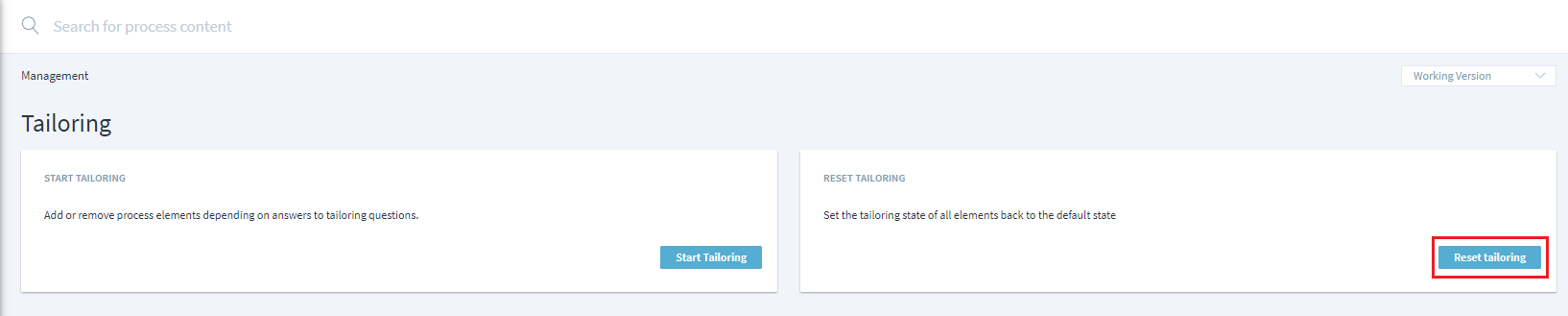 The tailoring assistant guides you through the tailoring process. It can be started via the Process start page and … > Start Tailoring