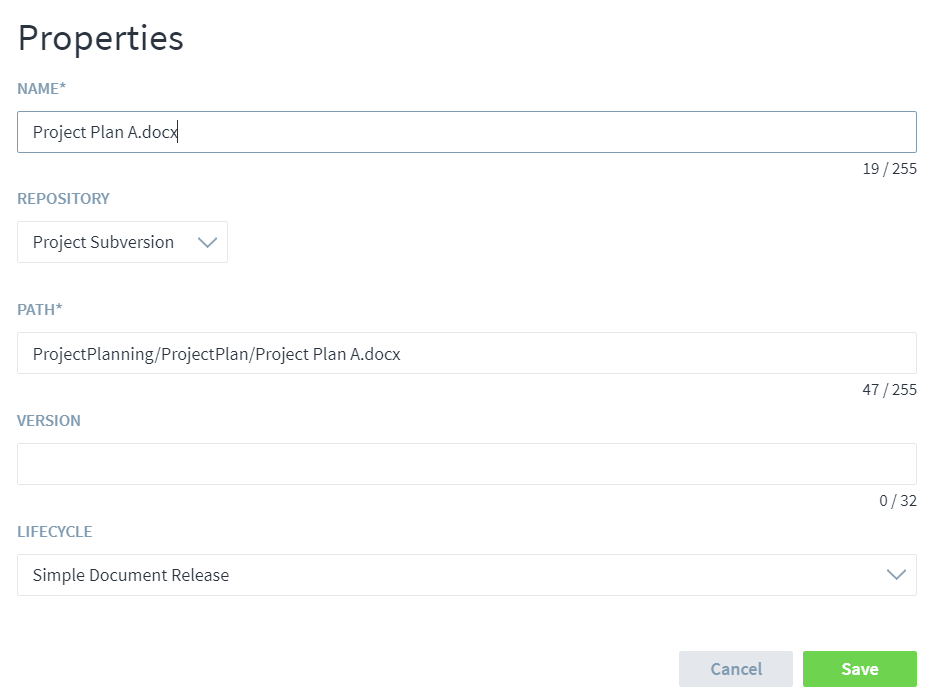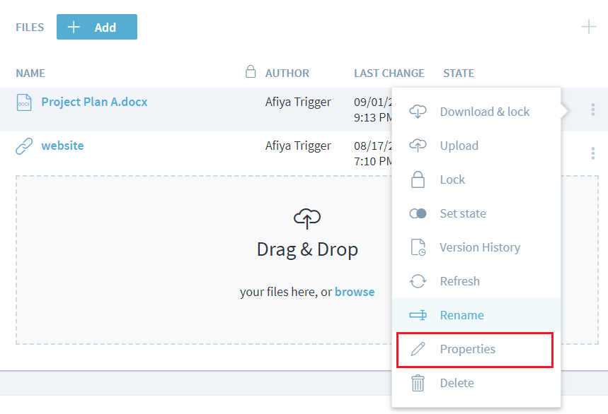 Another way to update this information for a work product is by navigating to the work product in the Process and selecting the Properties.