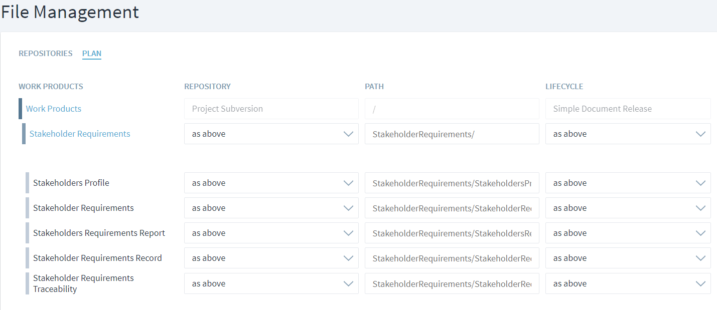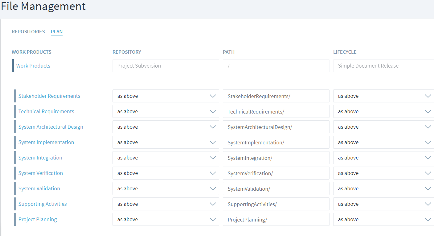 Once the repository has been set up, Configuration Management Plan will be automatically created for the work product.