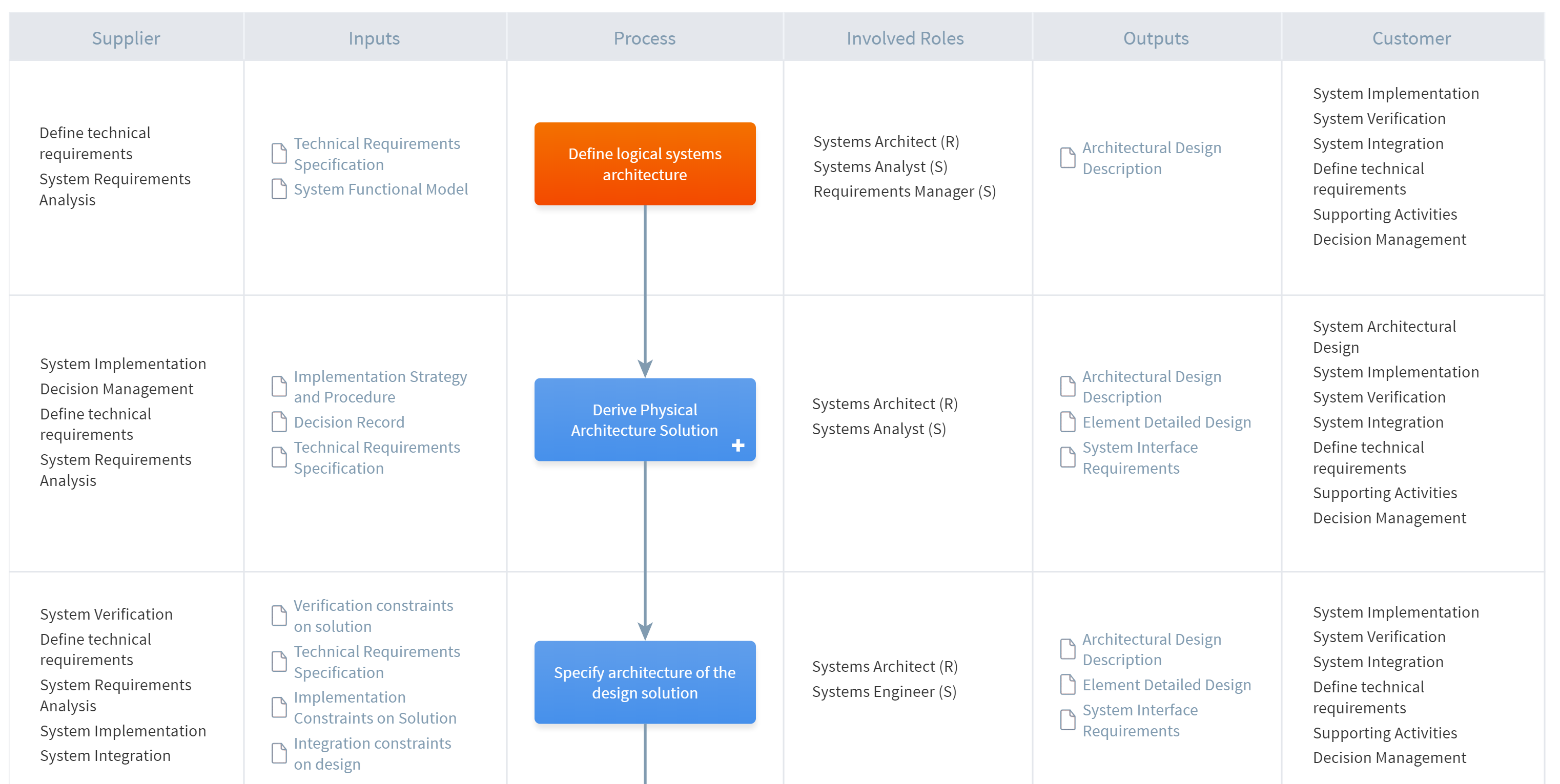 Engineering processes typically contain a lot of activities like “Review and Approve Work Product”, “Baseline Work Product” or “Verify Work Product”. With the new Process Details feature, the review, baseline, or verification process can now be modeled as a separate workflow and associated with the respective activites. When a user views these activities in swimlane view, the detail workflow is directly shown as a second swimlane diagram.