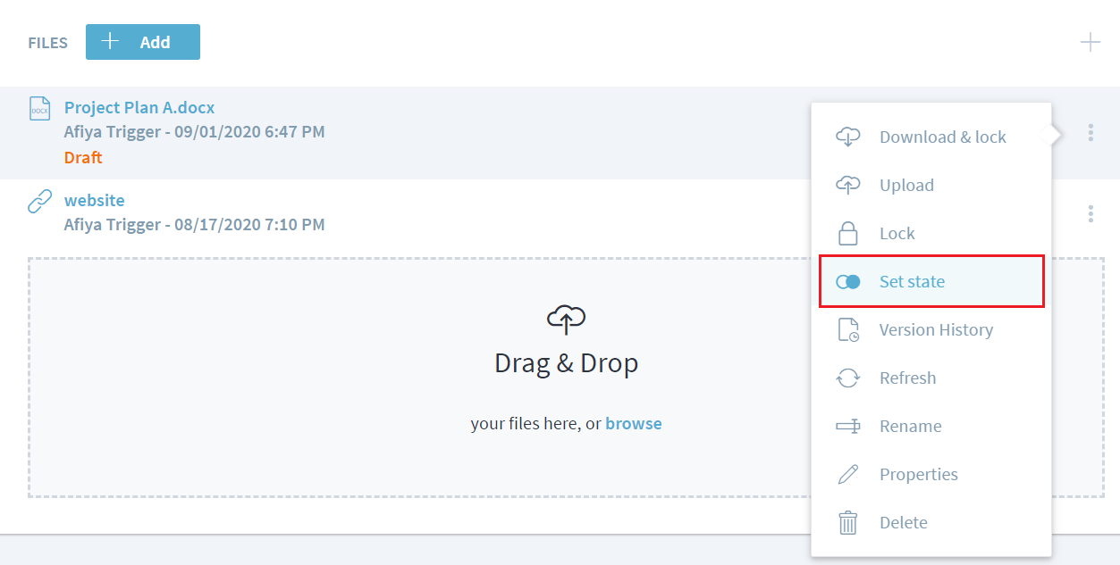 To set the state of the file, click on three dots next to the file name and select Set state.