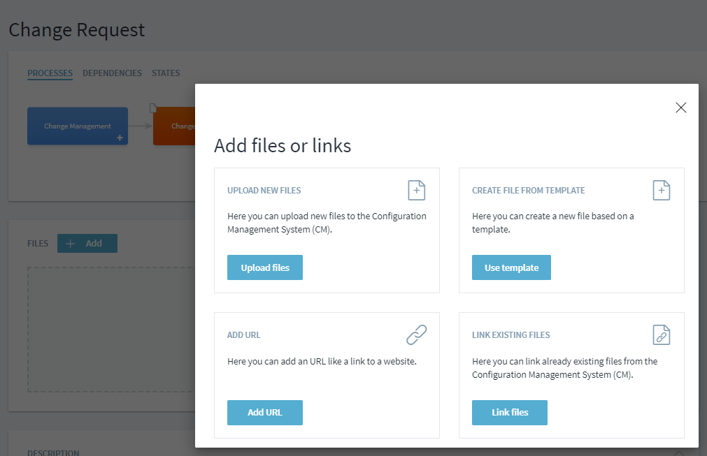 4. Linking to an existing file: CM system will have other files which can be linked by browsing and selecting the file to the work product. The linked file will have CM features of checking in and out, accessing version history available from the work product itself.
