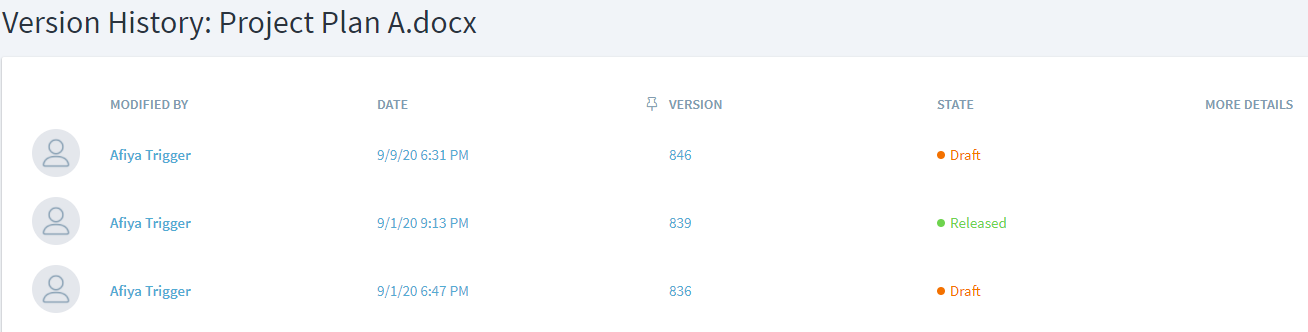 Using the version history, user can check all the version of the file along with other information like state, author and date and download the previous version if needed. To access version history, click on the three dots and select Version History.
