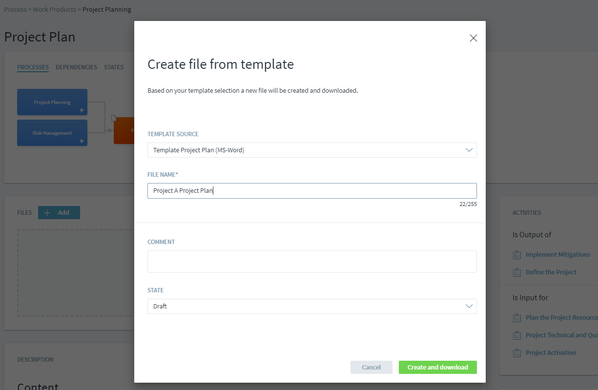 In an instantiated project or a program, specific deliverables are consumed as well generated during the execution of an activity. These deliverables files are part of the work product which has further information like description, guidance, milestone and activity or workflow where it is used as input or output.