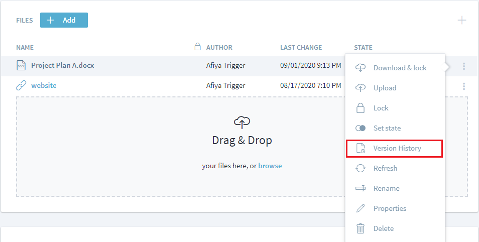 To set the state of the file, click on three dots next to the file name and select Set state.