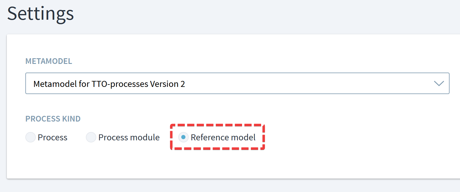 Next, check that the process kind is set to “Reference Model” under Managment > Settings.